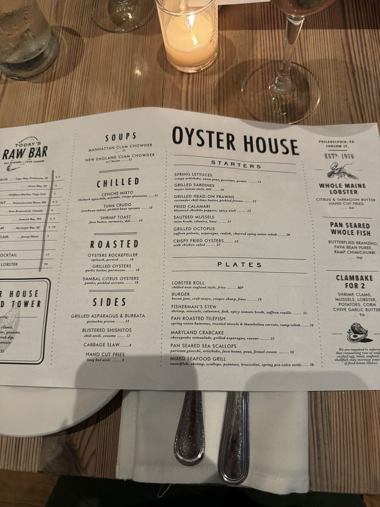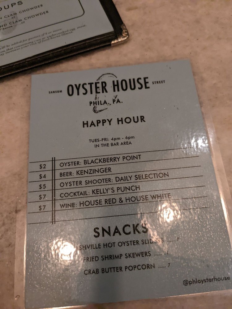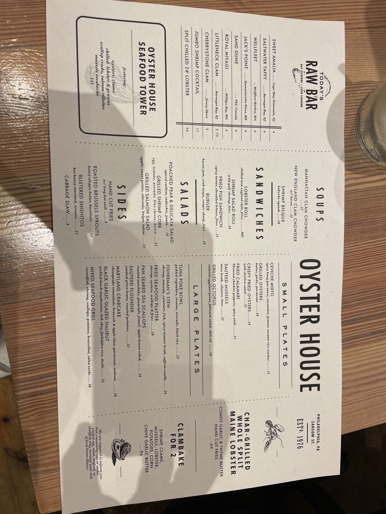 Welcome to Oyster House, a seafood haven located in Philadelphia, PA. This trendy spot offers a variety of vegan options and happy hour specials in a lively atmosphere. The large oyster bar is a highlight, perfect for oyster enthusiasts. Customer reviews rave about the freshness of the seafood, especially the oysters, scallops, and crab cakes. The dessert menu, featuring the must-try butterscotch pudding, is a delightful surprise. The professional service and spacious ambiance add to the overall experience. Whether you're looking to enjoy a meal with friends or a relaxing late lunch, Oyster House is a must-visit spot for seafood lovers.